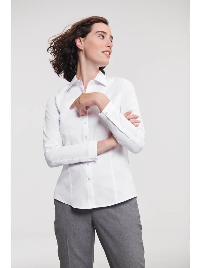 popis: Snadné ošetřování, polootevřený límec s vyztužením, barevně sladěné knoflíky, zakulacená manžeta se 2 knoflíky, navíc 1 knoflík na záložce manžety, zakulacené lemování, střih vypasovaný na tělo.